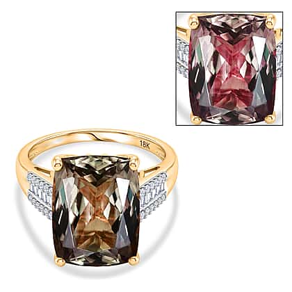 Indulge in the grandeur of fine jewellery with this exceptional turkizite and diamond ring, a piece that embodies rarity, artistry, and timeless distinction. At its centre, a magnificent AAAA natural turkizite reveals a captivating play of warm, shifting tones, cut in a cushion form to enhance its depth and presence. Framed by VS–E-F natural diamonds, the design radiates a refined brilliance that elevates the centre stone without overshadowing its character. Set in 18K yellow gold, the intricate gallery and polished band reflect masterful craftsmanship. This ring is not merely an accessory, but a statement of beauty and individuality, destined for special occasions and treasured collections.