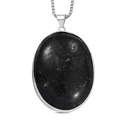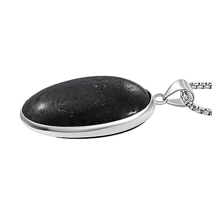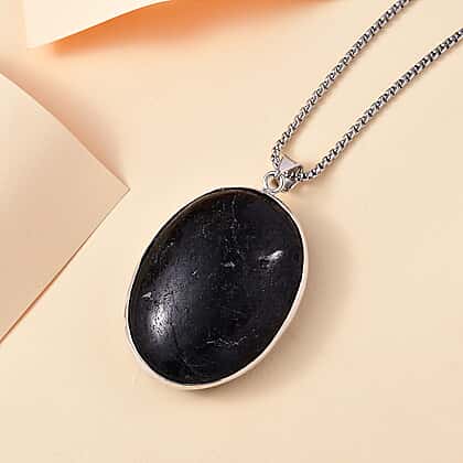 Black Tourmaline Solitaire Pendant with Chain (Size 20) in Stainless Steel 200 Ct.