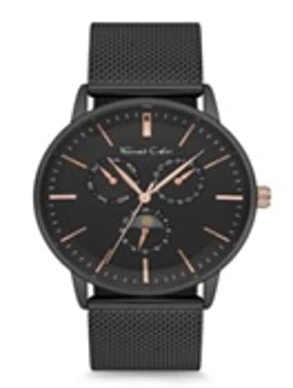 Thomas Calvi Black Dial Mens Watch with Mesh Style Stainless Steel Strap in Black Tone