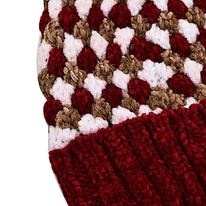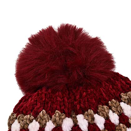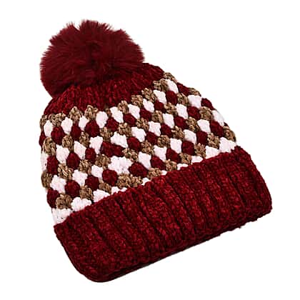 Thomas Calvi Honeycomb Pattern Knitted Bobble Fashion Winter Hat- Red