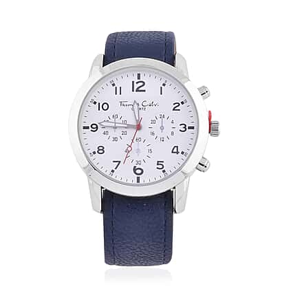 Thomas Calvi White Dial Mens Quartz Watch Gift Set with Interchangeable Straps in Silver Tone