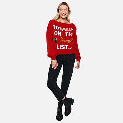 Threadbare Boat Neck Design Christmas Jumper (Size 10) - Red