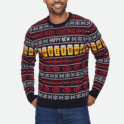 Threadbare Happy New Beer Design Christmas Jumper (Size L) - Navy