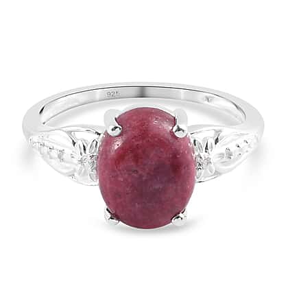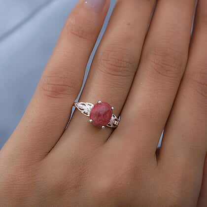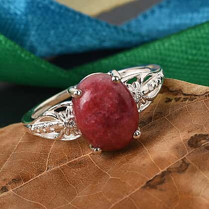 - Thulite, also known as rosaline zoisite, forms the eye catching main stone in this ring