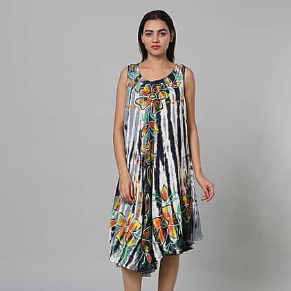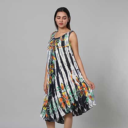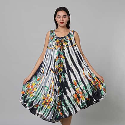 Tie & Dye Black and White Umbrella Dress in Floral Pattern (Size upto 18)