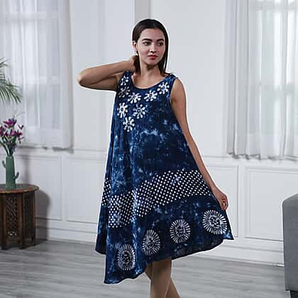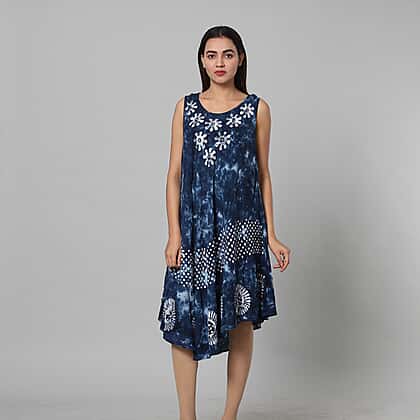 Tie Dye Umbrella Dress in Blue Size upto 18 Length 120cm/47in