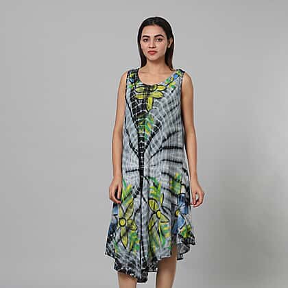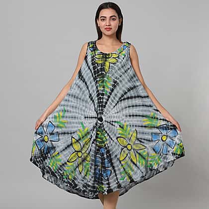 Tie & Dye Umbrella Dress in Grey and Black (Size upto 20) Length - 120cm/47in