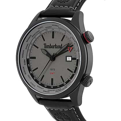 Timberland City Lifestyler Grey 45 mm Dial 5 ATM Water Resistant Watch with Black Colour Leather Strap