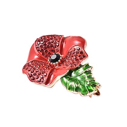 TJC Design - Black and Red Austrian Crystal Enamelled Flower Brooch