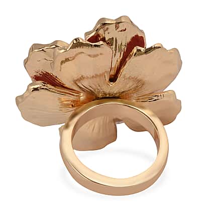 TJC Design - Black Austrian Crystal Enamelled Flower Ring in Gold Tone