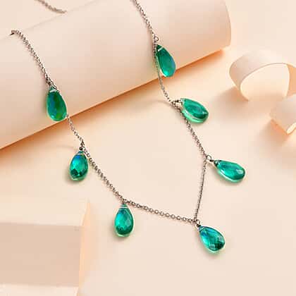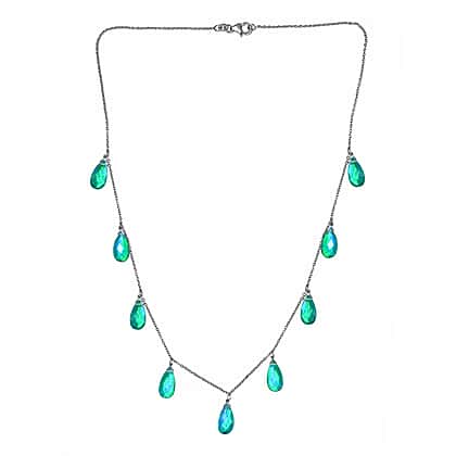 - Necklace features 9 Peacock Triplet Quartz drops in Free Faceted Cut.