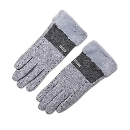 Luxury Cashmere Wool Gloves With Detailing and Fleece Lining - Grey