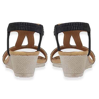Jo - Joe Cape Verde Ladies Mid Heel Wedge Comfort Sandal With Glitzy Jewels, Elasticated Slingback Strap And Flexible Sole (Size 4) - Black