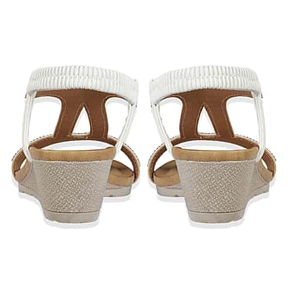 Jo - Joe Cape Verde Ladies Mid Heel Wedge Comfort Sandal With Glitzy Jewels, Elasticated Slingback Strap And Flexible Sole (Size 6) - White