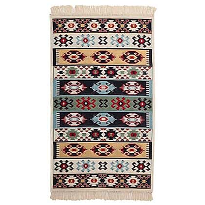 - Traditional Turkish kilim designs with vivid colours and patterns.