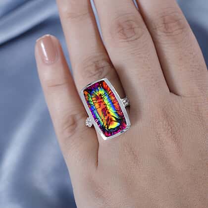 Experience the cosmic beauty of the Nebula Quartz Doublet ring, where the grandeur of the universe is captured in a single piece. With its elongated design, this ring promises to be a showstopper, blending elegance with an otherworldly charm. The captivating nebula quartz doublet, known for its stunning display of colours reminiscent of distant galaxies, takes centre stage. Surrounded by a halo of shimmering white zircons, this solitaire-style ring offers a luxurious sparkle. Perfect for those who appreciate unique jewellery that tells a story, it's set in lustrous rhodium overlay sterling silver, ensuring durability and shine. This exquisite piece not only adorns your hand but also reflects your distinctive style and personality.