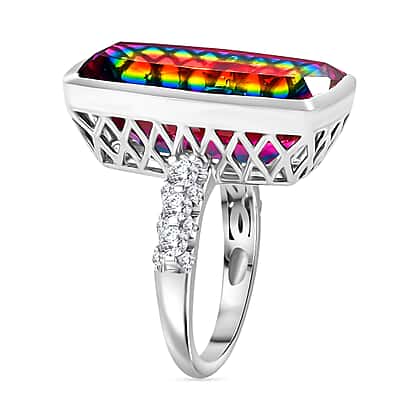 Nebula Quartz Doublet, White Zircon Elongated Ring in Rhodium Overlay Sterling Silver 17.01 Ct.