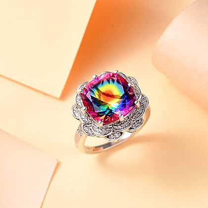 TJC Launch Nebula Quartz Doublet & White Zircon Ring in Rhodium Overlay Sterling Silver 7.43 Ct.