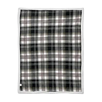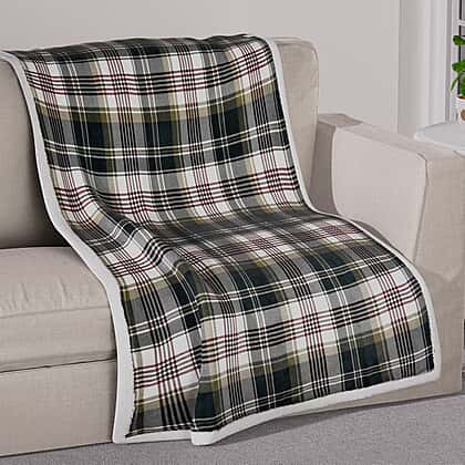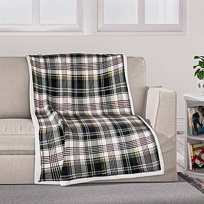 Tjc Square Pattern Sherpa Blanket (Size 150x115 Cm) - Green, White and Brown