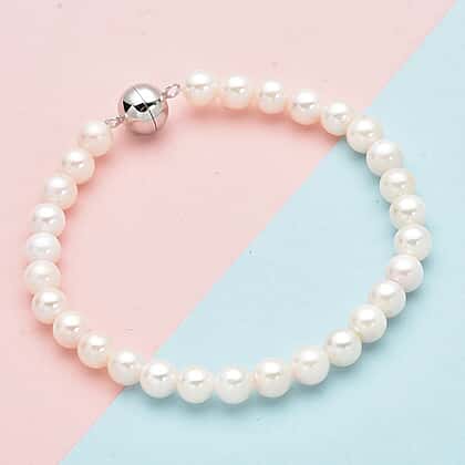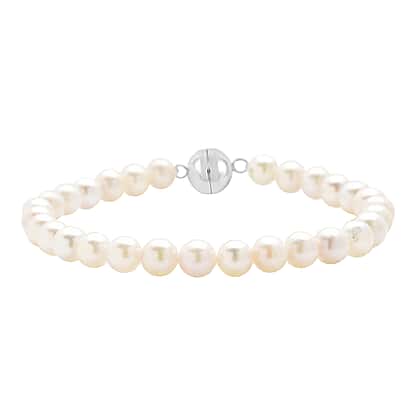 5-6mm Japanese Akoya Pearl Beads Bracelet Size 7 in Rhodium Plated Sterling Silver