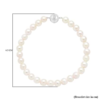 TLV- Japanese Akoya Pearl Beads Bracelet (Size - 7) in Rhodium Overlay Sterling Silver