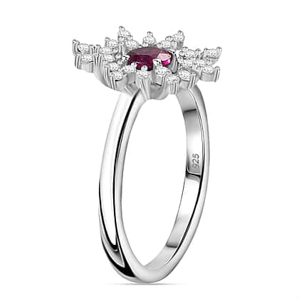Purple Garnet, White Zircon Firework Ring in Rhodium Overlay Sterling Silver, 0.627 Ct.