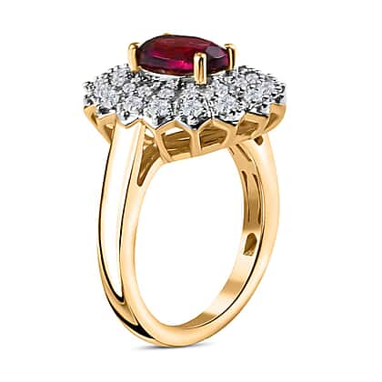 Tony Diniz Collection - Natural Ember Garnet & Natural White Zircon Ring in 18K Vermeil Yellow Gold Plated Sterling Silver 2.70 Ct
