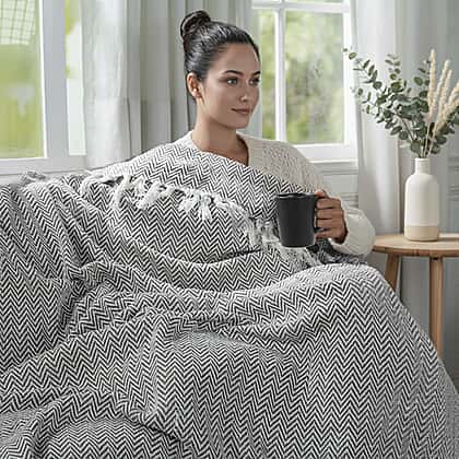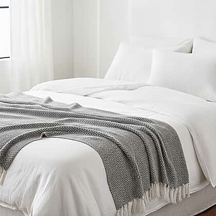 Wrap yourself in warmth and comfort with the Home Smart 100% soft cotton chevron weaved throw blanket. Crafted from pure, breathable cotton, this grey throw features a timeless chevron weave design that adds subtle texture and elegance to any space. Measuring 130x160 cm and weighing around 800 grams, it’s the perfect size for snuggling on the sofa, layering over your bed, or adding a cosy touch to your favourite chair. With its soft feel and stylish tassel edges, this throw blends comfort with contemporary charm — ideal for creating an inviting, relaxing home atmosphere.