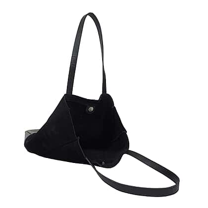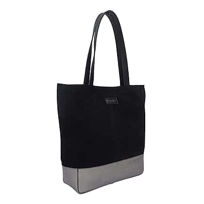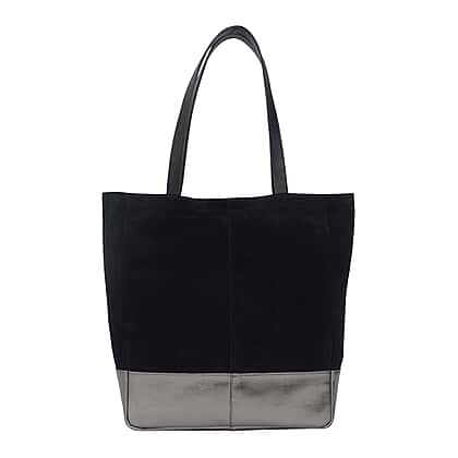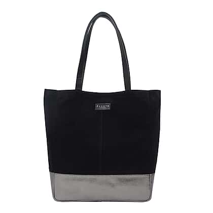 DOD - ASSOTS LONDON Paige Genuine Leather Suede & Metallic Tote Bag - Black & Pewter
