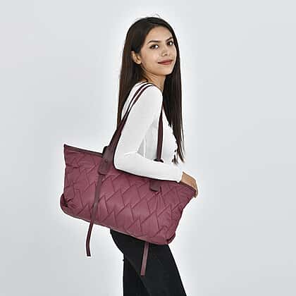 Quilted Pattern Tote Bag with Hand Drop - Maroon