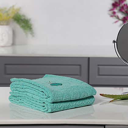 Set of 2 - 100% Cotton Embroidered Terry Bath Towel (Size:130X70 CM cms)- Teal Blue