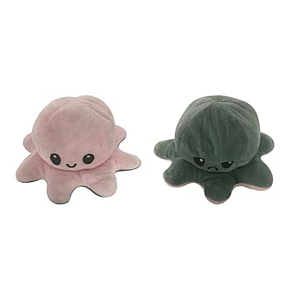 20cm Reversible Happy Sad Octopus Plush Toy Purple, Green and Light Pink