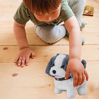 Doorbuster - Electric Walking Plush Dog Toy - Grey (2 AA Battery Not Included)