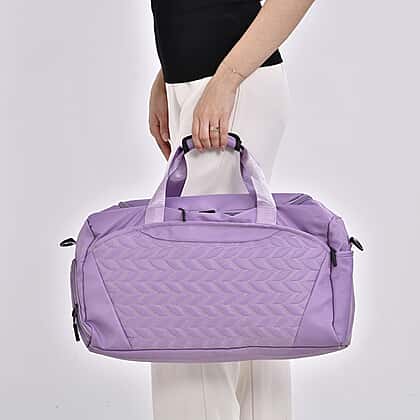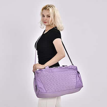 Travel Duffle Bag with Quilted Leaves Pattern - Purple