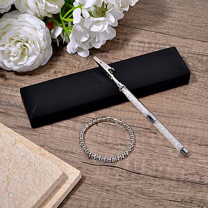 2 Piece Set - Crystal Bracelet (Size 7.5) with Bracelet Buddy in Silver Tone