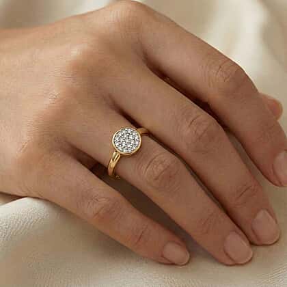 - A minimalistic feel is offered to the ring by the 1.9-gram 14K yellow gold plated sterling silver shank