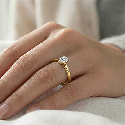 Steal the spotlight with this statement jewellery, adorned with a captivating pear shaped lab grown diamond at its heart that exudes luxury. The cut is designed to enhance light reflection, allowing brilliance to travel across the surface. The diamond is beautifully raised to allow reflection of light from every angle. Meticulously crafted in 18K vermeil yellow gold plating on 925 sterling silver, this ring offers warm tone shine and adds a thick layer of gold. The solitaire setting makes this luxurious piece suitable for special occasions by drawing full attention to clarity and brilliance. A perfect piece for memorable gifting and personal indulgence for a refined touch. Ready to capture lime light and brilliance together with this lab grown diamond ring, a reflection of light.