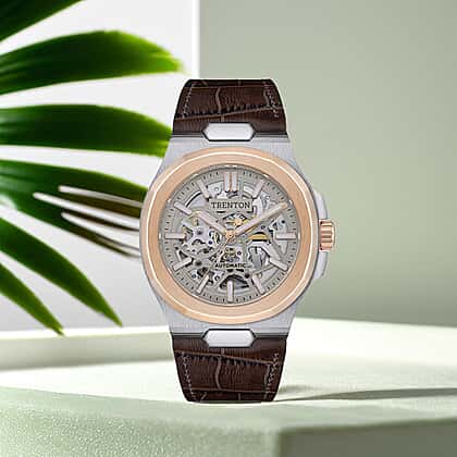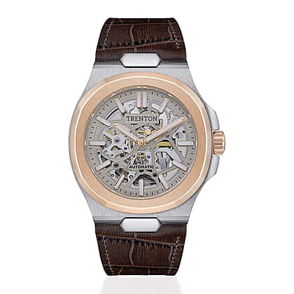 Elevate your style with the Trenton Catalina Automatic Men's Watch, featuring a sophisticated skeleton dial and a luxurious brown leather strap. The 44.5mm stainless steel case with a silver and gold finish adds a touch of elegance, while the automatic movement showcases intricate inner mechanics beneath the scratch-resistant mineral glass. This watch is water-resistant up to 50 meters, combining durability with timeless appeal. It’s a versatile accessory that complements any outfit and is ideal for both daily wear and special occasions.