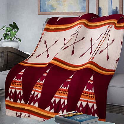 Tribal Pattern Sherpa Blanket (Size 200x150Cm) - Burgundy