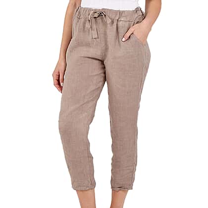 These cropped from Nova of London are made from the finest quality of linen fabric. The very soft and stretchable design makes it perfect for everyday wear. Features a drawstring closure to let you easily personalise the fit according to your convenience. The distinctive mocha colour of these trousers creates a simplistic appearance. Designed with two pockets to let you keep your valuable safe and secure. Team these cropped pattern trousers with a variety of tops for an on-trend flair.