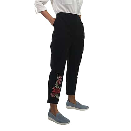 Pure and Natural Fully Elasticated Waist Trousers with Flower in Black (Size 12)