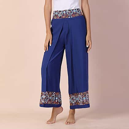 LA MAREY 100% Viscose Embroidery Women Trousers (Size 8-14) - Blue