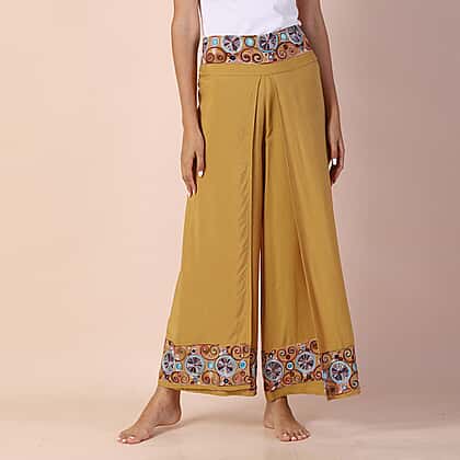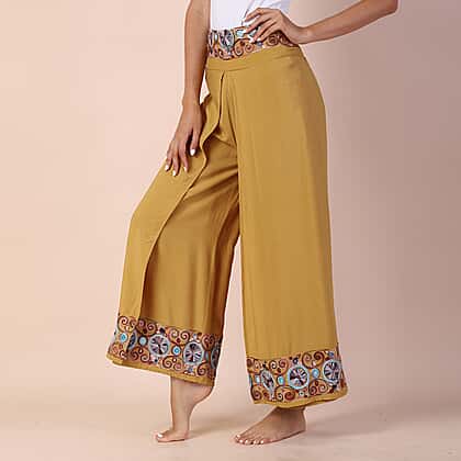LA MAREY 100% Viscose Embroidery Women Trousers (Size 8-14) - Mustard