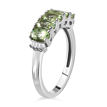 Tsavorite Garnet and Diamond 5 Stone Ring in Platinum Overlay Sterling Silver 1.34 Ct.