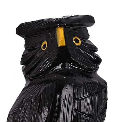 Tucson Find -- Gem Decor Owl Figurine (Length 3.5 cm, Height - 10 Cm) - Black