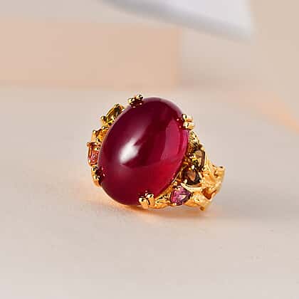 Tucson Special - African Ruby & Multi-Tourmaline Ring in 18K Vermeil Yellow Gold Plated Sterling Silver 22.84 Ct, Silver Wt 5.73 GM