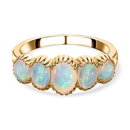 Tucson Special - Ethiopian Welo Opal 5 Stone Ring in 18K Vermeil Yellow Gold Plated Sterling Silver 1.583 Ct