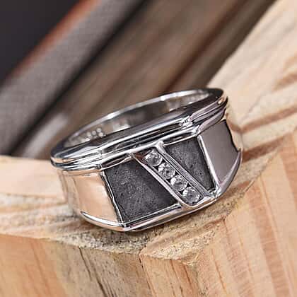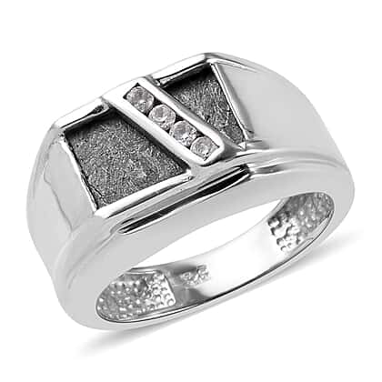 1.03 Ct Meteorite and Cambodian Zircon Solitaire Ring in Platinum Plated Sterling Silver 6.45 Grams