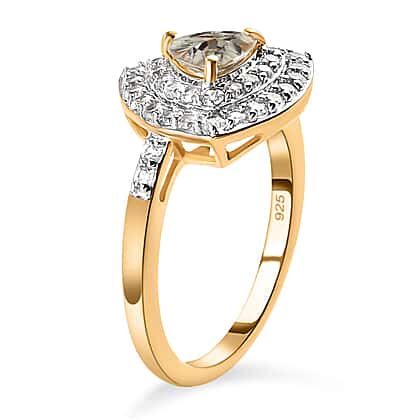 Turkizite and Natural Zircon Ring in Yellow Gold Vermeil Plated Sterling Silver 1.70 Ct.