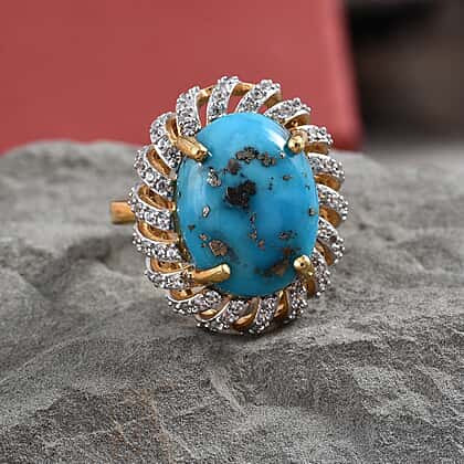 Turquoise (Ovl 16x12 mm), Natural Cambodian Zircon Ring in 14K Gold Overlay Sterling Silver 9.75 Ct.